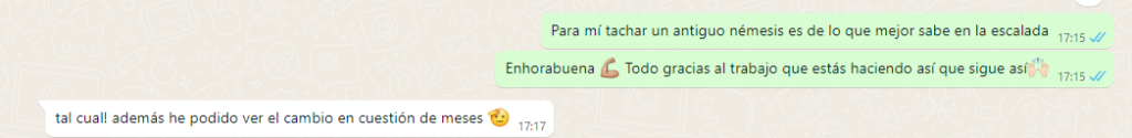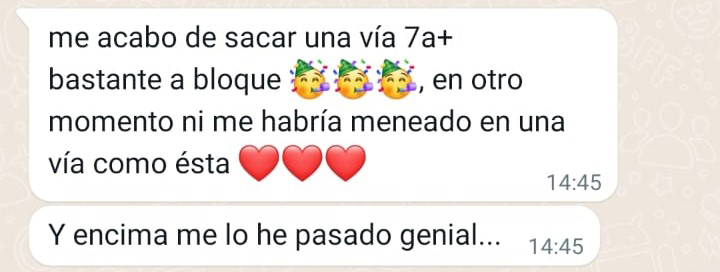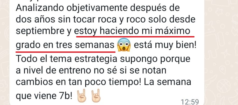 Y por eso ahora me dedico a ayudar a otros escaladores a que entrenen mejor y sientan ese progreso en roca que sentí yo, a superar sus metas y a cumplir sus objetivos.