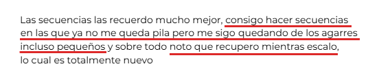 Además, sentía que debido a esto, muchas veces la cabeza le frenaba para probar cosas más duras, pensando “no le voy a dar, porque no soy capaz de hacer esta vía/este grado”
